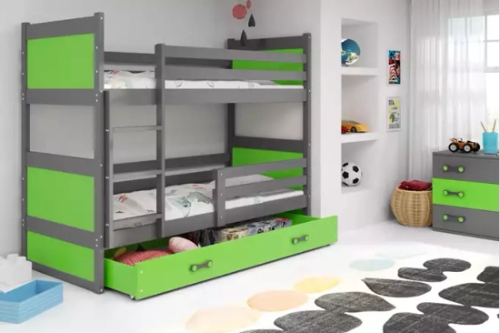 Lit ado superposé Rico 90X190 avec tiroir, gris/vert