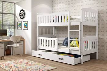 Lit ado superposé Rico 90X190 avec matelas et tiroir, pin/blanc