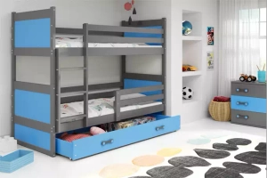 Lit ado superposé Rico 90X190 avec matelas et tiroir, gris/bleu