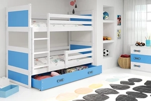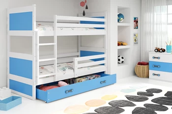 Lit ado superposé Rico 90X190 avec matelas et tiroir, pin/bleu