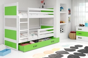 Lit ado superposé Rico 90X190 avec matelas et tiroir, pin/vert
