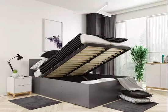 Lit double Le Panamax 140X200 avec matelas et coffre, gris