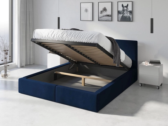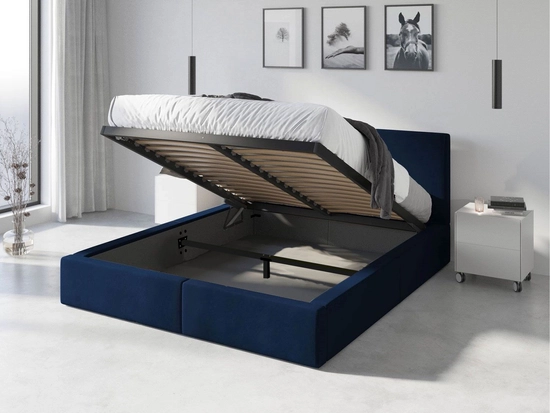 Lit double rembourré Le Hilton 160X200 avec coffre, bleu