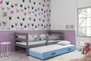 Lit ado gigogne Éric 90X190 avec tiroir, gris/bleu