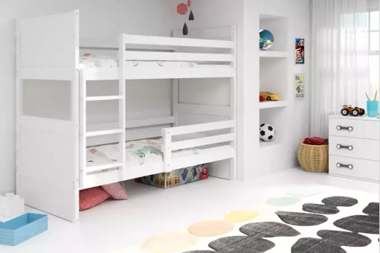Lit ado superposé Rico 90X190 avec matelas, pin/blanc