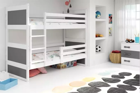 Lit ado superposé Rico 90X190 avec matelas, gris/blanc