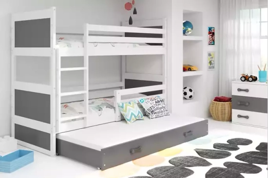 Lit ado superposé 3 places Rico 90X190 avec tiroir, gris/blanc