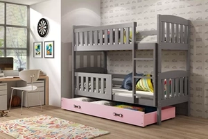 Lit ado superposé Jacquot 90X190 avec matelas et tiroir, gris/rose