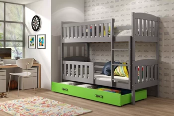 Lit ado superposé Jacquot 90X190 avec tiroir, gris/vert
