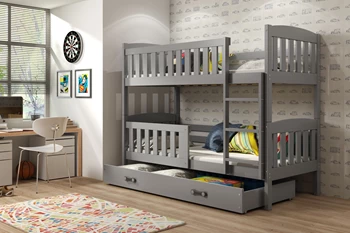 Lit ado superposé Jacquot 90X190 avec matelas et tiroir, gris