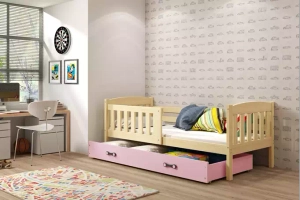 Lit ado simple Jacquot 90X190 avec tiroir, pin/rose