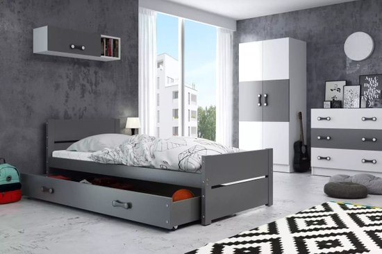Lit ado simple Bart 90X200 avec tiroir, gris