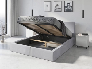 Lit double rembourré Le Hilton 160X200 avec coffre, gris clair
