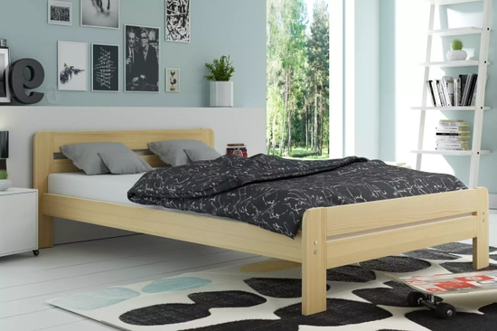 Lit double Loft 160X200 avec matelas et coffre, chêne