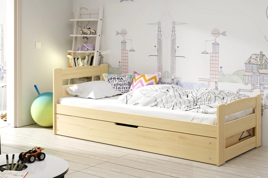 Lit ado gigogne Rico 90X200 avec tiroir, pin/blanc