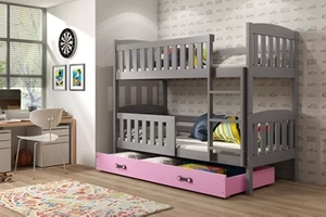 LIT ADOLESCENT SUPERPOSÉ KUBUS LE CADRE EN GRIS LE TIROIR EN ROSE 90 X 200