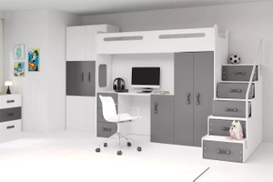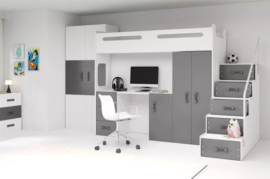 Lit ado simple Max 4 80X200 avec matelas et bureau, gris