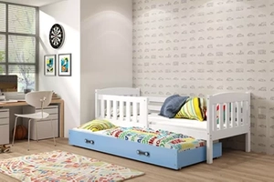 Lit ado gigogne Jacquot 90X200 avec matelas et tiroir, blanc/bleu