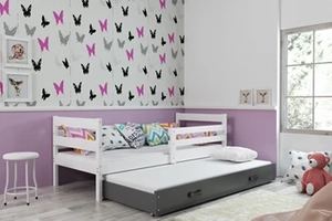 Lit ado gigogne Éric 90X190 avec matelas et tiroir, blanc/gris