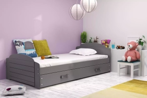 Lit ado simple Lili 90X200 avec matelas et tiroir, gris