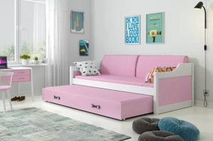 Lit ado gigogne David 90X200 avec matelas et tiroir, blanc/rose
