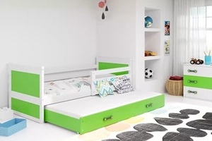 Lit ado gigogne Rico 90X200 avec tiroir, blanc/vert