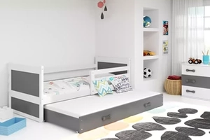 Lit ado gigogne Rico 90X190 avec tiroir, gris/blanc