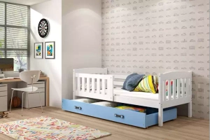 Lit enfant simple Jacquot 80X160 avec tiroir, gris/bleu
