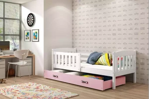 Lit ado simple Jacquot 90X190 avec tiroir, blanc/rose