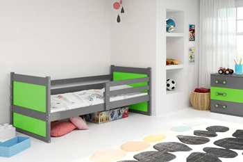 Lit ado simple Rico 90X200 avec matelas, gris/vert