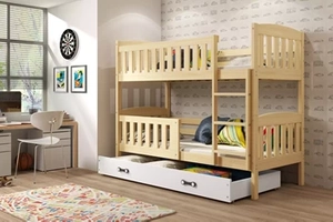 Lit ado superposé Jacquot 90X200 avec tiroir, pin/blanc