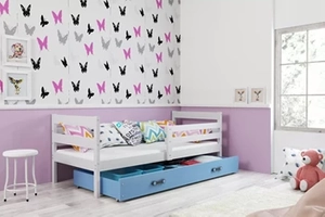 Lit ado simple Éric 80X190 avec tiroir, blanc/bleu