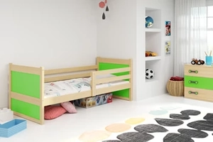 Lit ado superposé Rico 90X190 avec matelas, pin/vert