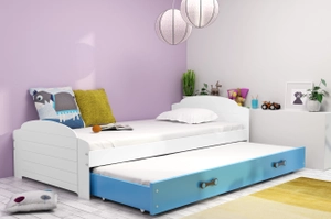 Lit ado gigogne Lili 90X200 avec tiroir, blanc/bleu