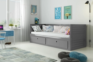 Lit ado gigogne Hermès 80X200 avec tiroir, gris