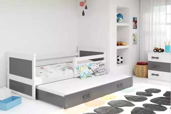 Lit ado gigogne Rico 90X190 avec tiroir, blanc/gris