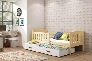 Lit ado gigogne Jacquot 90X190 avec matelas et tiroir, pin/blanc