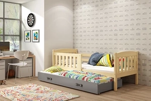 Lit ado gigogne Jacquot 80X190 avec matelas et tiroir, pin/gris