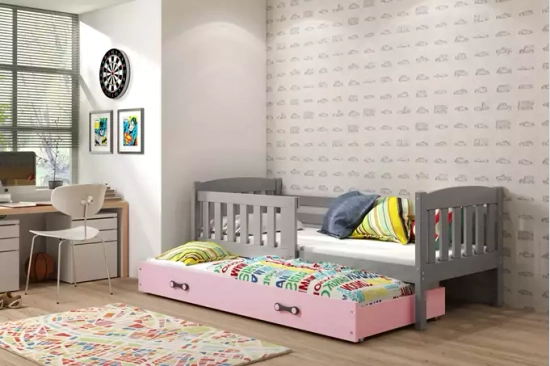 Lit ado gigogne Jacquot 90X190 avec tiroir, gris/rose
