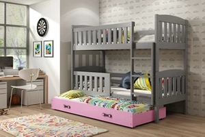 LIT ADOLESCENT SUPERPOSÉ 3 PLACES KUBUS LE CADRE EN GRIS LE TIROIR EN ROSE 90 X 200