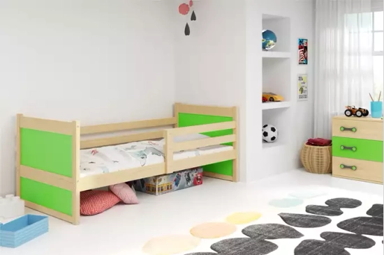 Lit ado simple Rico 90X200 avec matelas, pin/vert