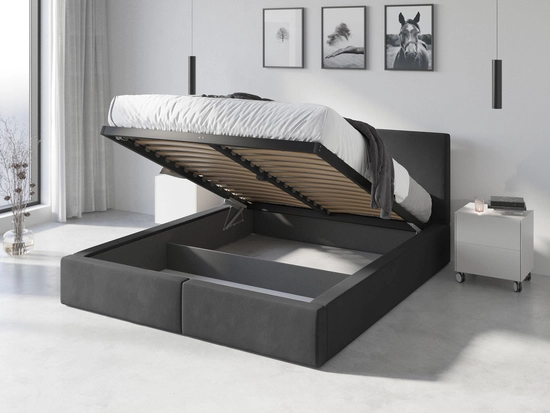 Lit double rembourré Le Hilton 180X200 avec coffre, graphite