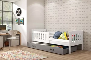 Lit enfant simple Classique 80X160 avec matelas et rangement, gris