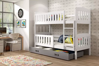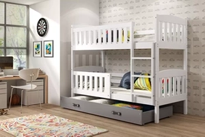 Lit ado superposé Jacquot 90X200 avec matelas et tiroir, gris/blanc