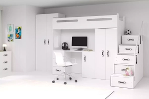 Lit ado simple Max 4 80X200 mezzanine avec bureau, blanc