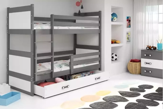 Lit ado superposé Rico 90X200 avec tiroir, gris/blanc