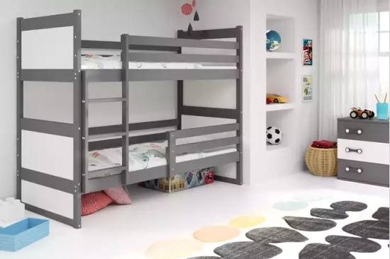 Lit ado superposé Rico 90X200 avec matelas, gris/blanc