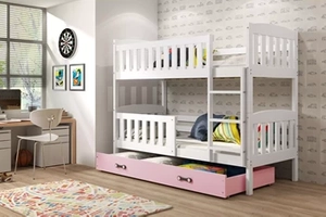 Lit ado superposé Rico 90X200 avec matelas, pin/rose