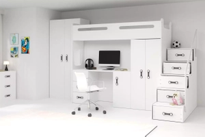 Lit ado simple Max 4 80X200 avec matelas et bureau, blanc