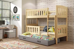 Lit ado superposé 3 places Jacquot 90X190 avec tiroir, pin/gris